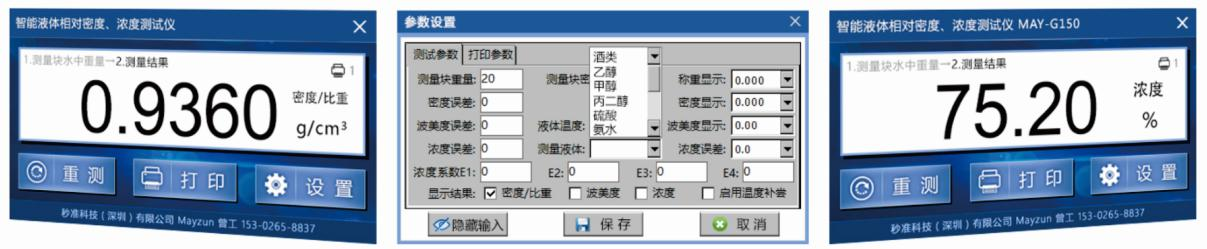 测试种类: | 比重S.G、 轻波美Bé°、浓度C% |