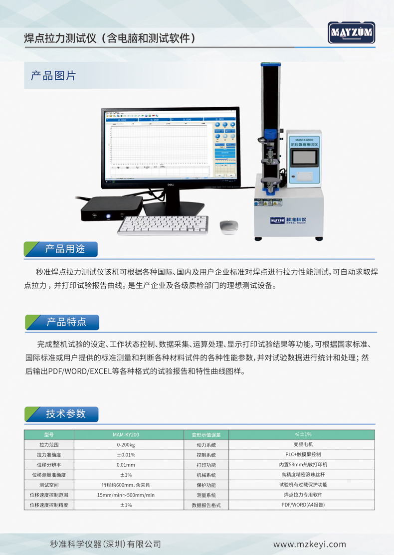 > MAM-ky200焊点拉力测试仪三点抗弯强度检测仪